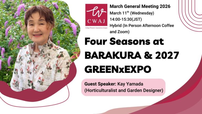 CWAJ月例会はすべて英語で執り行われます。あらかじめご了承のほどお願いいた
