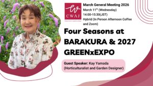 Speaker: Ms. Kay Yamada, Authority on English-style gardens, Garden Designer, Guest professor at Tokyo Kasei Gakuin University, and Owner of Barakura English Garden