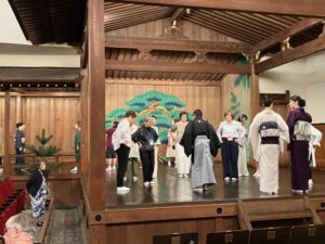 Our Cultural Program Masks of Time: A Journey into Noh Tradition took place on Friday, September 19 at the Yarai Noh Gakudo in Kagurazaka. The event was wonderful and appreciated by all those who attended. Guests had the chance to try wearing Noh masks and playing the kotsuzumi” drum as well as chanting Takasago