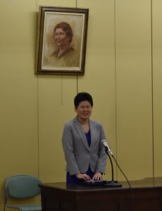 Good afternoon, everyone. My name is Eri Nakase, and I was just introduced by Heidi, the President of CWAJ. I serve as the Co-chair of VVI together with my fellow Co-chair, Nancy Tsurumaki. I myself am totally blind from birth and was a CWAJ Scholarship recipient in 2004. First of all, on behalf of VVI, I would like to express my heartfelt gratitude for selecting us as the award recipient. VVI was established in 1975 and celebrates its 50th anniversary this year. Throughout these five decades, members from various countries have developed diverse programs focusing on English. We are deeply honored that our long-standing efforts have been recognized through this award. As Heidi has already explained the details of our activities, I would like to take this opportunity to share my personal connection with CWAJ.