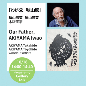 Join us for a gallery talk with brothers Takahide Akiyama and Toyohide Akiyama, sons of much-loved Print Show artist Akiyama Iwao. Talk will be given in English and Japanese.