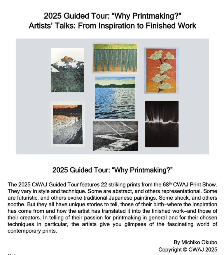 The 2025 Guided Tour presents two booklets: The 2025 Guided Tour: “Why Printmaking?” and its companion piece “A Brief Guide to Printmaking Techniques.”